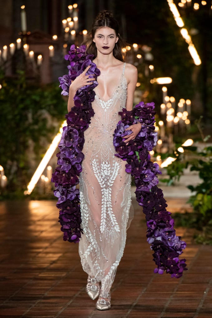 I love this collection because it is not like any of the others. It is eerie but elegant, and had intricate but wearable designs. The show itself was in St. Bartholomew’s Church in Midtown Manhattan and was dark with flickering candles. It was very well done and intriguing to watch.
